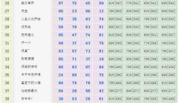 2860期:特区杀二头二尾平台统计 发表于:2023-03-17 16:01:07 浏览次数:1722 详情登录https://www.tqcp.net/kill_new_sj.php 上一篇:2860期:特区杀一头一尾统计 下一篇:2860期:特区杀三头三尾统计 【主攻头】 范围码15红10 点播26029期 【春哥打奖】 范围码15红10 点播26029期 【金山银山】 范围码15红9 点播26029期 排列五杀码荣誉榜