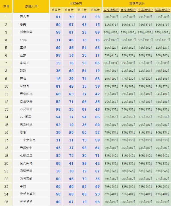 2865期:特区杀二头二尾平台统计 发表于:2023-03-27 12:01:12 浏览次数:1739 详情登录https://www.tqcp.net/kill_new_sj.php 上一篇:2865期:特区杀一头一尾统计 下一篇:2865期:特区杀三头三尾统计 【笑语】 范围码15红11 点播25325期 【在现江湖】 范围码15红9 点播25325期 【天时地利】 范围码15红9 点播25325期 排列五杀码荣誉榜