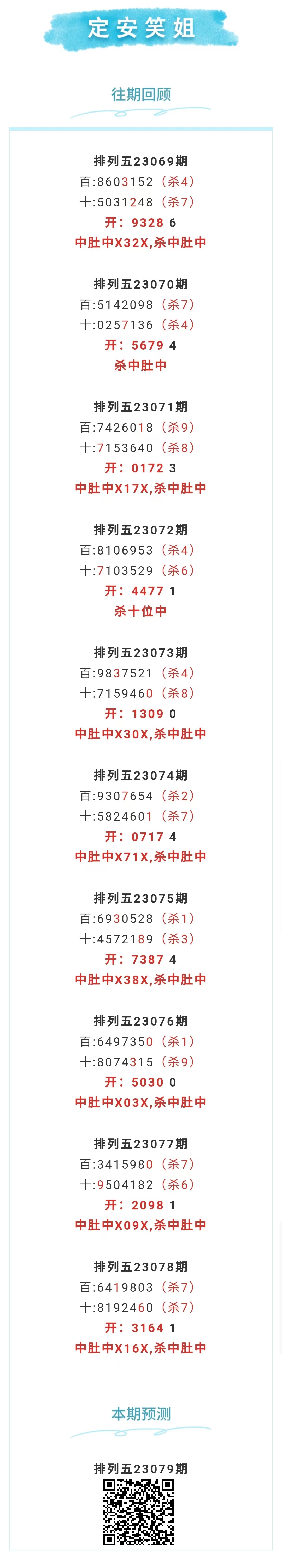 【排列五-079期】本月圈中22次中肚,中肚近10中8;上期中肚中X16X,杀中肚中 发表于:2023-03-30 12:29:43 浏览次数:1401 上一篇: 下一篇:没有了 【笑语】 范围码15红10 点播25326期 【天时地利】 范围码15红9 点播25326期 【无敌通杀】 范围码15红9 点播25326期 排列五杀码荣誉榜