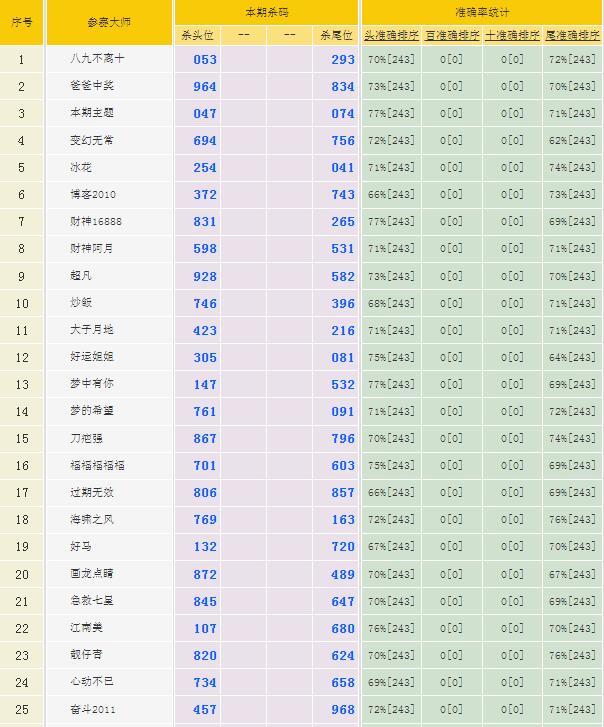 2871期:特区杀三头三尾统计 发表于:2023-04-10 12:01:16 浏览次数:1987 详情登录https://www.tqcp.net/stswkill_sj.php 上一篇:2871期:特区杀二头二尾平台统计 下一篇:2871期:七星出号统计 【笑语】 范围码15红11 点播25325期 【在现江湖】 范围码15红9 点播25325期 【天时地利】 范围码15红9 点播25325期 排列五杀码荣誉榜