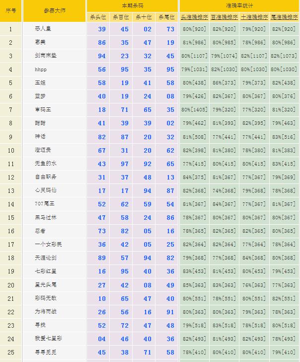 2876期:特区杀二头二尾平台统计 发表于:2023-04-22 12:01:17 浏览次数:2282 详情登录https://www.tqcp.net/kill_new_sj.php 上一篇:2876期:特区杀一头一尾统计 下一篇:2876期:特区杀三头三尾统计 【笑语】 范围码15红11 点播25325期 【在现江湖】 范围码15红9 点播25325期 【天时地利】 范围码15红9 点播25325期 排列五杀码荣誉榜