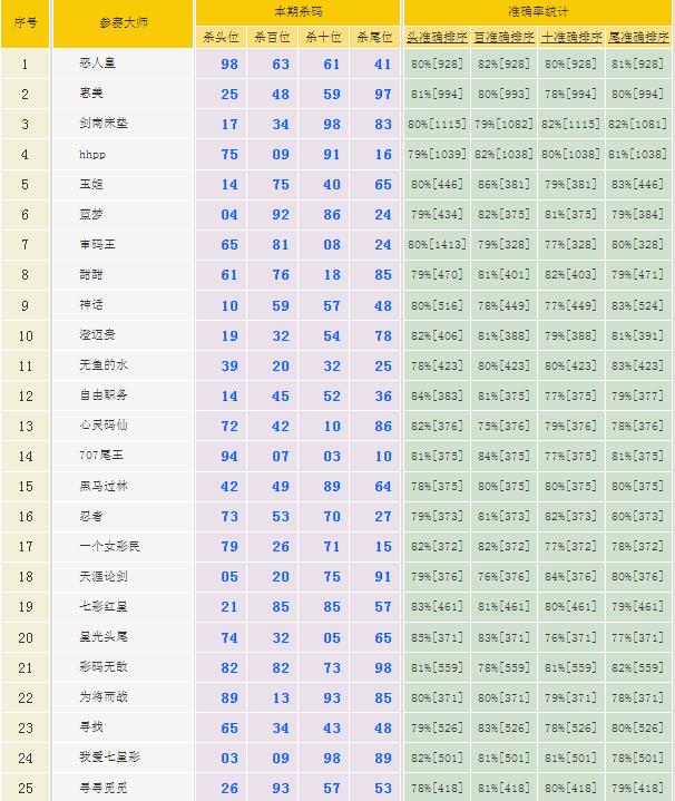 2884期:特区杀二头二尾平台统计 发表于:2023-05-11 17:01:11 浏览次数:1983 详情登录https://www.tqcp.net/kill_new_sj.php 上一篇:2884期:特区杀一头一尾统计 下一篇:2884期:特区杀三头三尾统计 【笑语】 范围码15红11 点播25325期 【在现江湖】 范围码15红9 点播25325期 【天时地利】 范围码15红9 点播25325期 排列五杀码荣誉榜