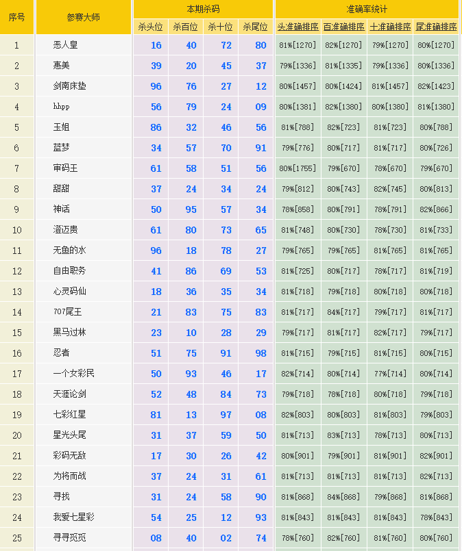 七星彩3227期特区杀二头二尾统计 发表于:2025-08-16 17:32:13 浏览次数:564 上一篇:七星彩3227期特区杀一头一尾统计 下一篇:七星彩3227期特区杀三头三尾统计 【春哥打奖】 范围码14红11 更新中 【天意人生】 范围码14红9 更新中 【彩女】 范围码14红9 更新中 七星彩杀码荣誉榜