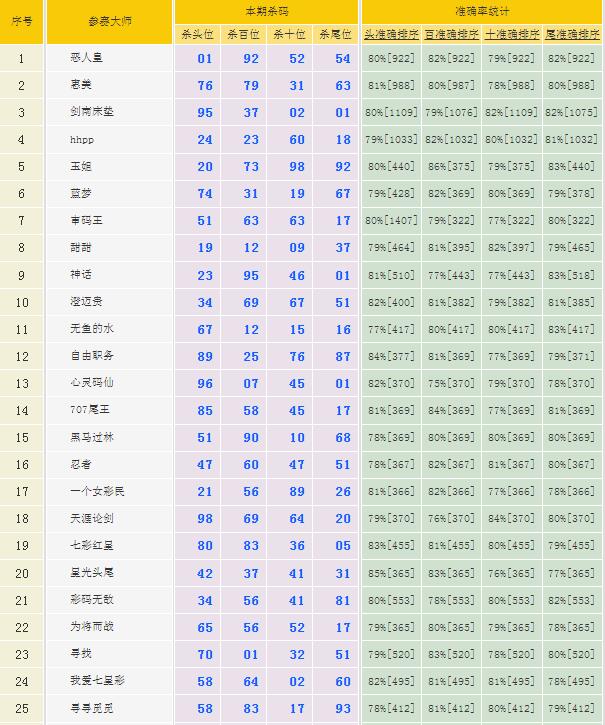 2878期:特区杀二头二尾平台统计 发表于:2023-04-27 10:31:20 浏览次数:1585 详情登录https://www.tqcp.net/kill_new_sj.php 上一篇:2878期:特区杀一头一尾统计 下一篇:2878期:特区杀三头三尾统计 【笑语】 范围码15红10 点播25326期 【天时地利】 范围码15红9 点播25326期 【无敌通杀】 范围码15红9 点播25326期 排列五杀码荣誉榜