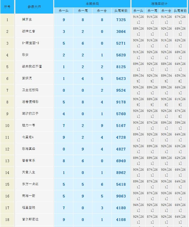 2879期:特区杀一头一尾统计 发表于:2023-04-30 12:01:17 浏览次数:981 详情登录https://www.tqcp.net/twtj_sj.php 上一篇:2879期:特区杀二头二尾平台统计 下一篇:2879期:特区杀二头二尾平台统计 【笑语】 范围码15红10 点播25326期 【天时地利】 范围码15红9 点播25326期 【无敌通杀】 范围码15红9 点播25326期 排列五杀码荣誉榜