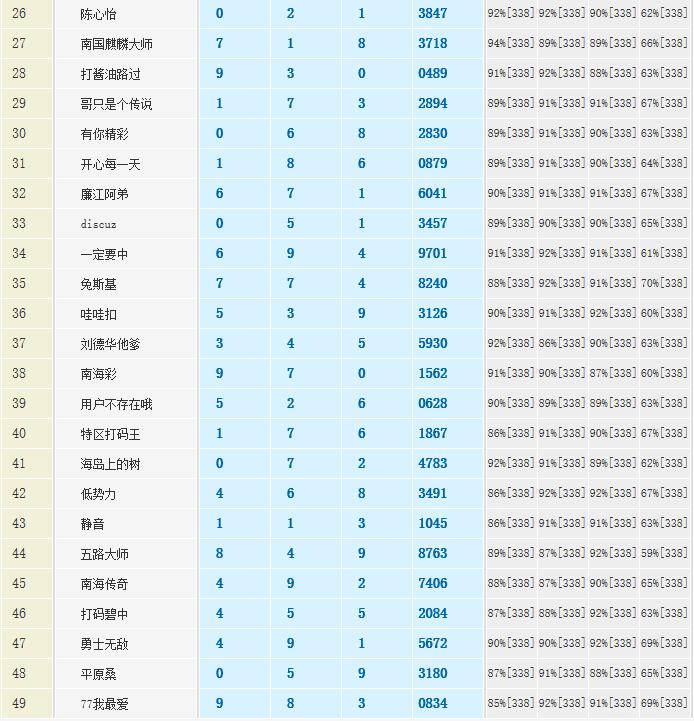 七星彩2955期特区杀一头一尾统计 发表于:2023-10-28 12:01:58 浏览次数:2222 详情登录https://www.tqcp.net/twtj_sj.php 上一篇:七星彩2955期特区杀三头三尾统计 下一篇:七星彩2955期特区杀三头三尾统计 【笑语】 范围码15红10 点播25326期 【天时地利】 范围码15红9 点播25326期 【无敌通杀】 范围码15红9 点播25326期 七星彩杀码荣誉榜