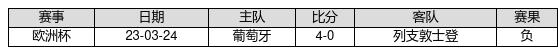 列支敦士登 VS 葡萄牙两队近10年的交战次数为1场,列支敦士登0胜0平1负,赢球概率为0%,平局概率为0%,输球概率为100%。