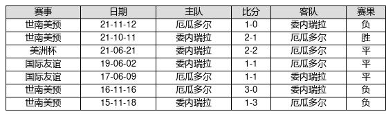 委内瑞拉 VS 厄瓜多尔两队近10年的交战次数为7场,委内瑞拉1胜3平3负,赢球概率为14.3%,平局概率为42.9%,输球概率为42.9%。