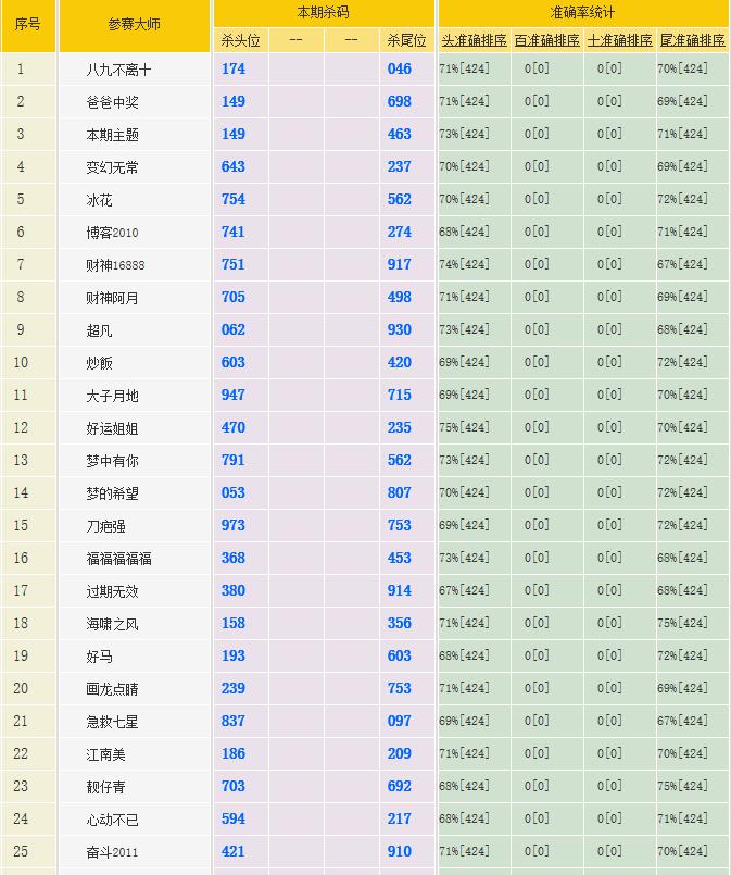 七星彩3052期特区杀三头三尾统计 发表于:2024-06-20 15:02:33 浏览次数:848 详情登录https://www.tqcp.net/stswkill_sj.html 上一篇:七星彩3052期特区杀一头一尾统计 下一篇:排列五24162期点播推荐老鼠精、 灵魂和阿Q 3位分析师 【笑语】 范围码15红10 点播25326期 【天时地利】 范围码15红9 点播25326期 【无敌通杀】 范围码15红9 点播25326期 七星彩杀码荣誉榜