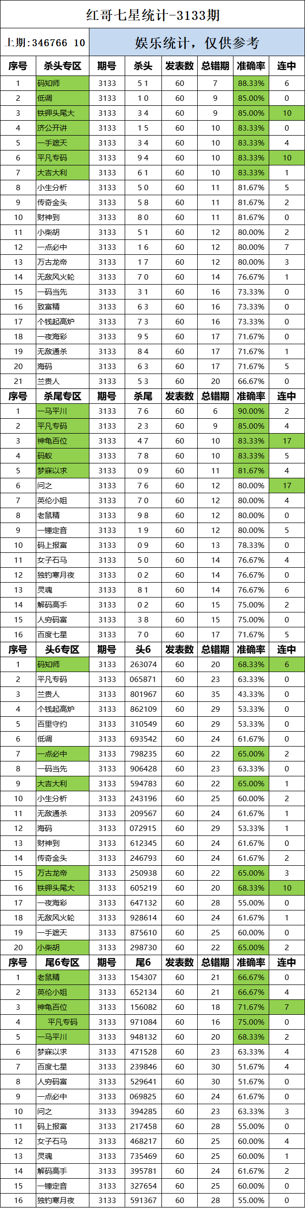 3133期:红哥统计 发表于:2024-12-30 10:33:12 浏览次数:840 上一篇:七星彩3133期特区杀三头三尾统计 下一篇:3133期:二爹统计 【笑语】 范围码15红10 点播25326期 【天时地利】 范围码15红9 点播25326期 【无敌通杀】 范围码15红9 点播25326期 排列五杀码荣誉榜