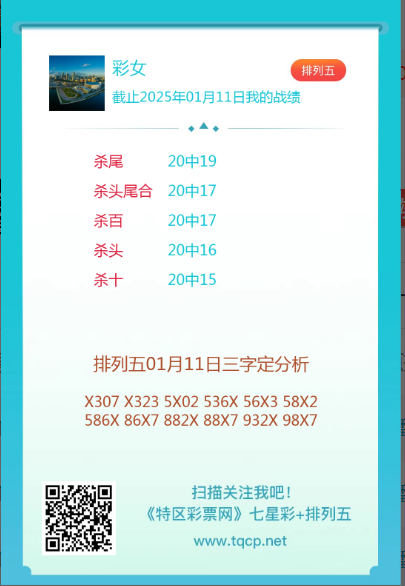 排列五25011期点播推荐彩女,地胆头和马旺旺 3位分析师 发表于:2025-01-11 15:14:27 浏览次数:827 上一篇:25011期:【为彩排列五】“步步高升”圈中芝麻1432,2连中;点播厅33位大师中芝麻! 下一篇:七星彩3138期点播推荐济公开讲、大发利市和原数理论 3位分析师 【笑语】 范围码15红10 点播25326期 【天时地利】 范围码15红9 点播25326期 【无敌通杀】 范围码15红9 点播25326期 排列五杀码荣誉榜