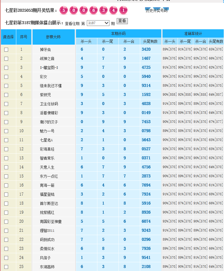 七星彩3187期特区杀一头一尾统计 发表于:2025-05-14 16:33:19 浏览次数:528 上一篇:七星彩3187期特区杀三头三尾统计 下一篇:七星彩3187期特区杀三头三尾统计 【笑语】 范围码15红11 点播25325期 【在现江湖】 范围码15红9 点播25325期 【天时地利】 范围码15红9 点播25325期 七星彩杀码荣誉榜