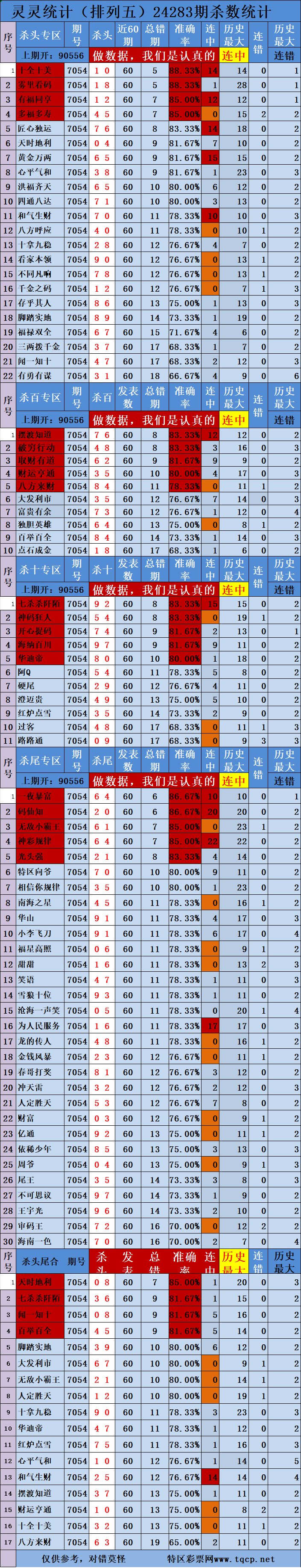 排列五24283期吉祥统计