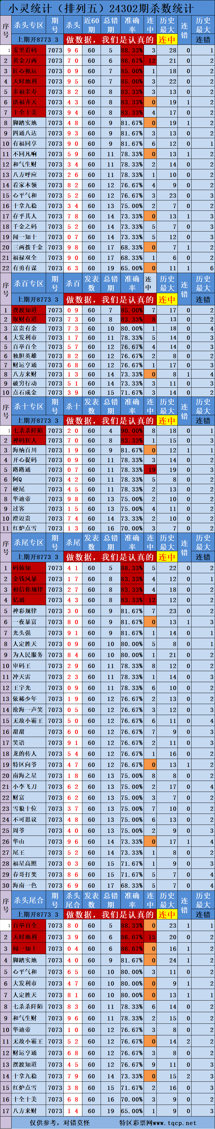 24303期:排列出号统计