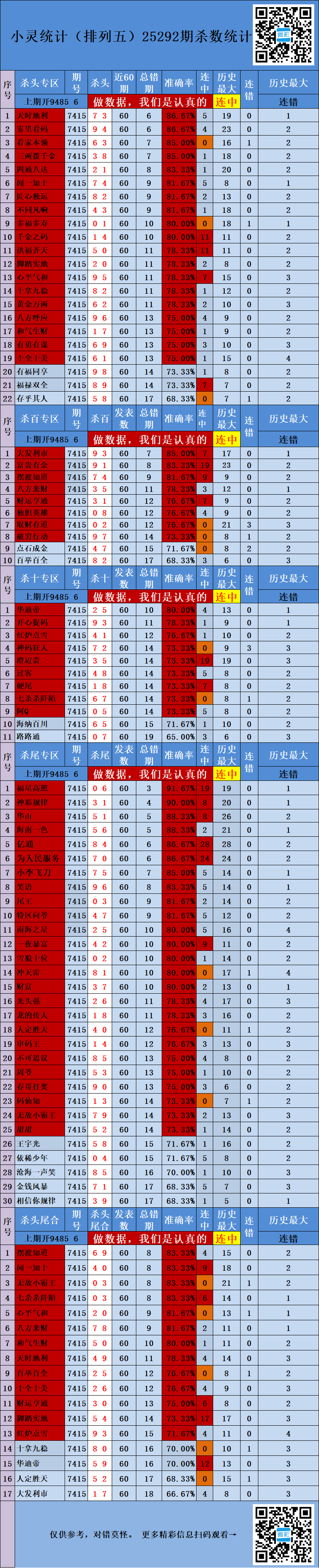 25292期:小灵统计