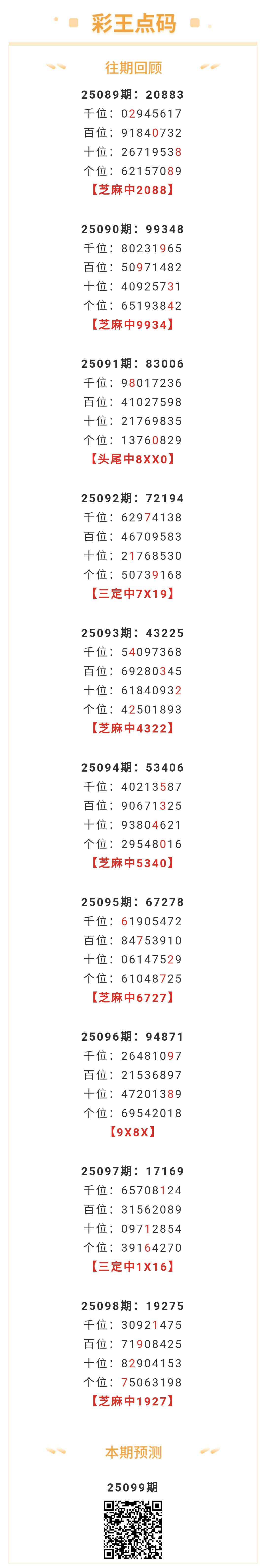 【排列五-25099期】本月圈中11次芝麻,芝麻近10中6;上期芝麻中1927 发表于:2025-04-19 11:12:30 浏览次数:442 上一篇: 下一篇:没有了 【九居士】 范围码15红10 点播26091期 【铁钾头尾大】 范围码15红9 点播26091期 【福星高照】 范围码15红9 点播26091期 排列五杀码荣誉榜