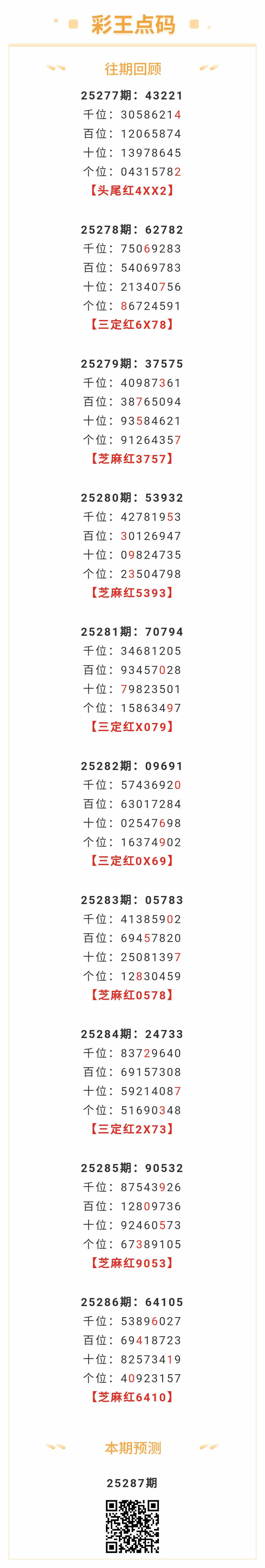 【排列五-25287期】芝麻2连红!本月圈红13次芝麻,芝麻近10红5;上期芝麻红6410 发表于:2025-10-28 10:54:42 来源:特区彩票网 上一篇: 下一篇:没有了 【红炉点雪】 范围码15红11 点播25332期 【海纳百川】 范围码15红9 点播25332期 【一手遮天】 范围码15红9 点播25332期 排列五杀码荣誉榜