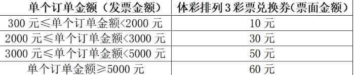 11月1日—12月7日,“苏新消费·苏彩焕新”第四期活动将全面开展。活动期间,年满18周岁的消费者,在江苏省内13个市的苏宁易购、京东五星线下直营门店购买享受国补指定商品(家电、3C商品),即有机会按单个订单消费金额(发票金额)获赠不同面值的彩票兑换券。其中,体彩赠送的是排列3彩票兑换券,兑换券以二维码形式发放。具体如下: