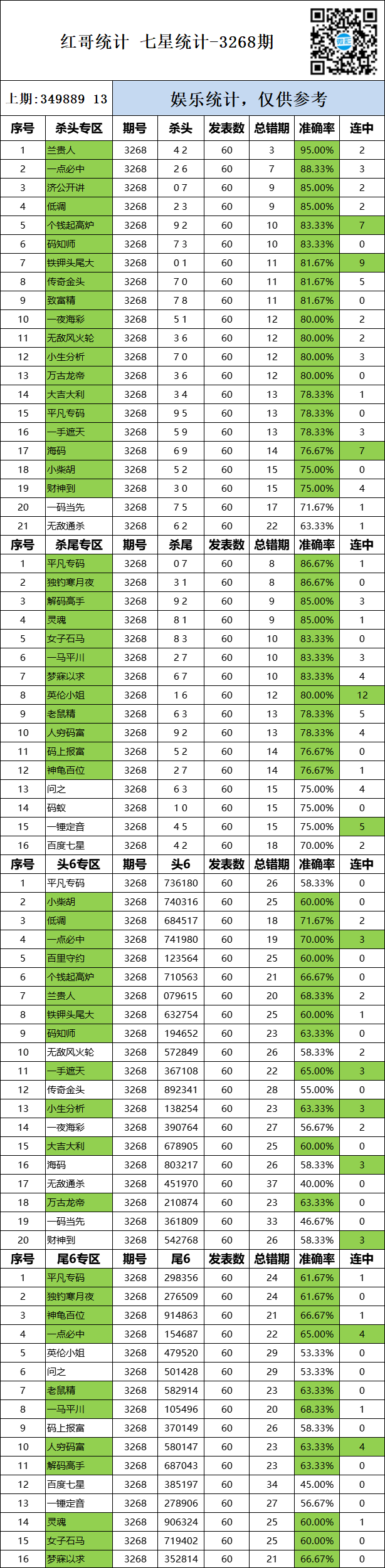 3268期:红哥统计 发表于:2025-11-22 11:34:26 来源:特区彩票网 上一篇: 下一篇:3268期:二爹统计 【红炉点雪】 范围码15红11 点播25332期 【海纳百川】 范围码15红9 点播25332期 【一手遮天】 范围码15红9 点播25332期 排列五杀码荣誉榜