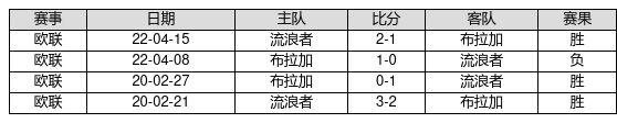 流浪者 VS 布拉加两队近10年的交战次数为4场,流浪者3胜0平1负,赢球概率为75.0%,平局概率为0.0%,输球概率为25.0%。