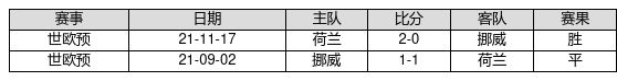 荷兰 VS 挪威两队近10年的交战次数为2场,荷兰1胜1平0负,赢球概率为50.0%,平局概率为50.0%,输球概率为0.0%。