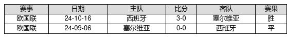 西班牙 VS 塞尔维亚两队近10年的交战次数为2场,西班牙1胜1平0负,赢球概率为50.0%,平局概率为50.0%,输球概率为0.0%。