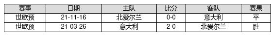 意大利 VS 北爱尔兰两队近10年的交战次数为2场,意大利1胜1平0负,赢球概率为50.0%,平局概率为50.0%,输球概率为0.0%。