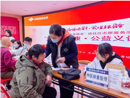 济南市机关医院的医护团队早早摆好诊疗设备,为到场老人提供“一站式”义诊服务。医护人员耐心为老人测量血糖、血压,细致解读检查数据;中医医师通过望闻问切,为有需求的老人提供中医控体重指导、穴位按摩建议,还现场开展中医耳豆疗法,通过刺激耳部穴位帮助老人调理身体。