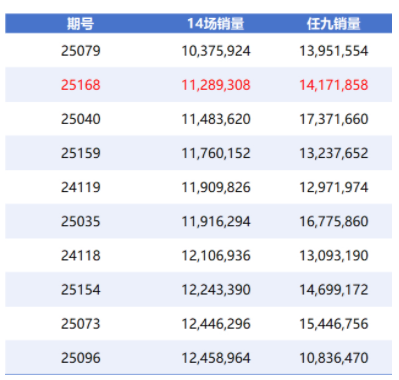 值得注意是,本期14场1128万余元的销量排名近3年足彩第2低,仅高于第25079期的1037万,具体排名见下表: