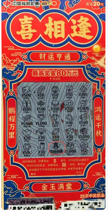 南昌彩民幸运刮中“喜相逢”大奖 斩获80万元奖金