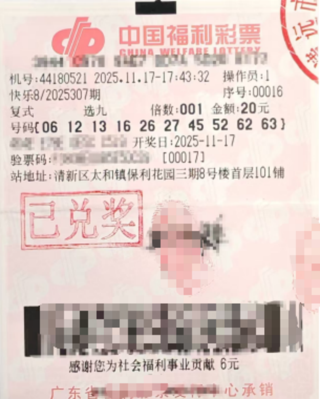 11月17日,中国福利彩票快乐8游戏第2025307期开奖,喜讯再次传来:清远市清新区一彩民在44180521福彩销售站点购买的20元福彩快乐8选九复式票,幸运中得31.8万元,这是清远市近一个月中出的第4个二十万元以上福彩大奖。