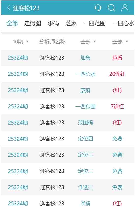排列五25325期点播推荐存乎其人,迎客松123和和气生财 位分析师 发表于:2025-12-05 16:39:01 浏览次数:367 上一篇:3273期:特区杀码统计 下一篇:3273期:特区杀码统计 【红炉点雪】 范围码15红10 点播25331期 【无敌通杀】 范围码15红9 点播25331期 【一手遮天】 范围码15红9 点播25331期 排列五杀码荣誉榜