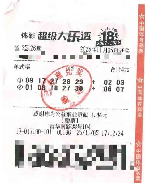 幸运降临东莞 赠票活动中出大乐透一等奖