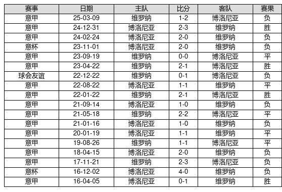维罗纳 VS 博洛尼亚两队近10年的交战次数为18场,维罗纳4胜5平9负,赢球概率为22.2%,平局概率为27.8%,输球概率为50.0%。