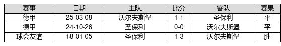沃尔夫斯堡 VS 圣保利两队近10年的交战次数为3场,沃尔夫斯堡1胜2平0负,赢球概率为33.3%,平局概率为66.7%,输球概率为0.0%。