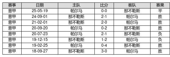 那不勒斯 VS 帕尔马两队近10年的交战次数为8场,那不勒斯5胜1平2负,赢球概率为62.5%,平局概率为12.5%,输球概率为25.0%。