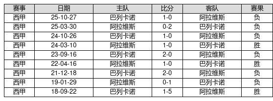 阿拉维斯 VS 巴列卡诺两队近10年的交战次数为9场,阿拉维斯3胜0平6负,赢球概率为33.3%,平局概率为0.0%,输球概率为66.7%。