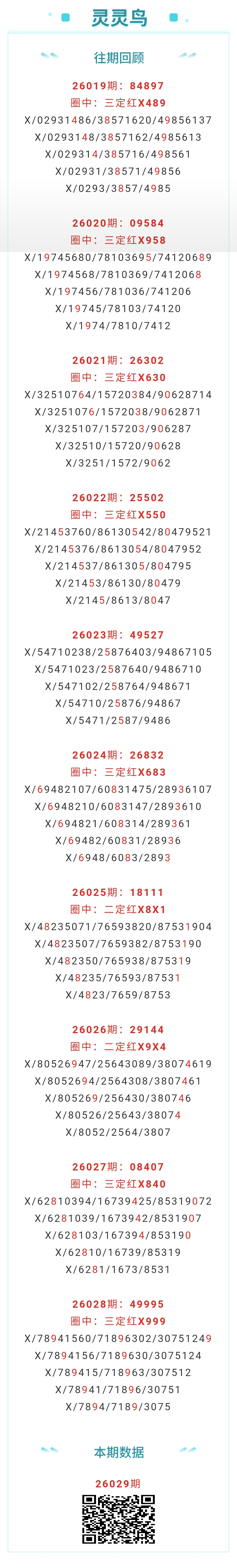 【排列五-26029期】三定2连红,本月圈红14次三定,三定近10红7;上期三定红X999 发表于:2026-01-29 11:42:40 浏览次数:300 上一篇: 下一篇:没有了 【春哥打奖】 范围码15红11 点播26030期 【天意人生】 范围码15红9 点播26030期 【彩女】 范围码15红9 点播26030期 排列五杀码荣誉榜