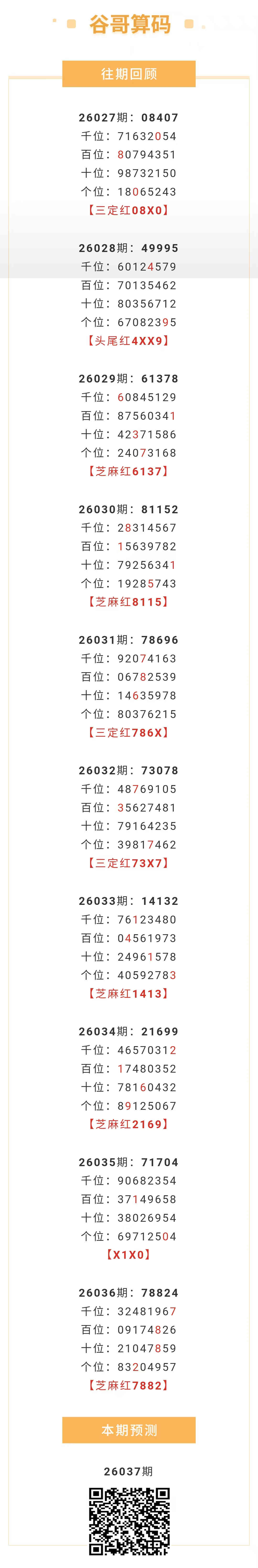 【排列五-26037期】本月圈红3次芝麻,芝麻近10红5;上期芝麻红7882 发表于:2026-02-06 11:34:13 浏览次数:300 上一篇: 下一篇:没有了 【灵魂】 范围码15红11 点播26038期 【彩女】 范围码15红10 点播26038期 【跑偏的鞋】 范围码15红9 点播26038期 排列五杀码荣誉榜