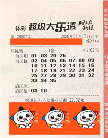1月17日,体彩大乐透26007期开奖,全国共中出18注一等奖,其中一注落在浙江省绍兴市,单票奖金为557万元。中奖者张先生(化姓)于1月19日来到浙江省体育彩票管理中心领取了这笔大奖。