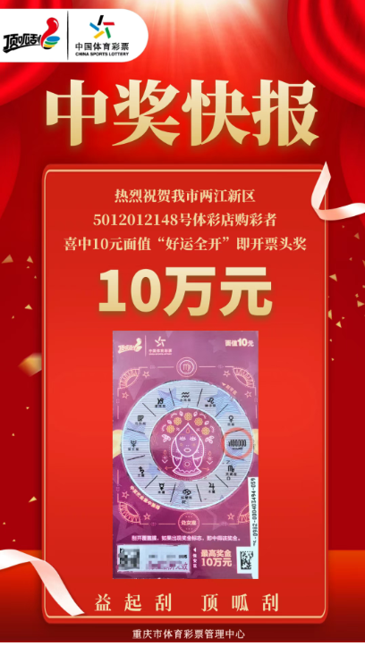 两江新区彩民喜获顶呱刮“好运全开”一等奖 发表于:2026-03-10 11:08:36 浏览次数:342 春风拂面,好运来临!近日,我市两江新区5012012148号体彩店迎来一位幸运彩民,喜中体彩顶呱刮“好运全开”10万元大奖。屏幕前的你,是不是也想收获属于自己的好运呢?别着急!小编还有好消息:原定于3月9日24:00结束的体彩顶呱刮“新春添好运·骏马启鸿福”活动,将延期至3月31日。想抓住活动机会,收获惊喜的朋友们赶紧行动,说不定下一个幸运儿就是你! 上一篇: 下一篇:没有了 【脚踏实地】 范围码15红11 点播26064期 【圣斗士】 范围码15红10 点播26064期 【徐艾艾】 范围码15红10 点播26064期 排列五杀码荣誉榜