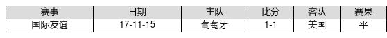 美国 VS 葡萄牙两队近10年的交战次数为1场,美国0胜1平0负,赢球概率为0.0%,平局概率为100.0%,输球概率为0.0%。