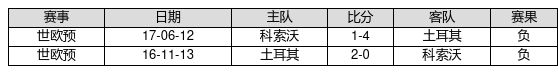 科索沃 VS 土耳其两队近10年的交战次数为2场,科索沃0胜0平2负,赢球概率为0.0%,平局概率为0.0%,输球概率为100.0%。