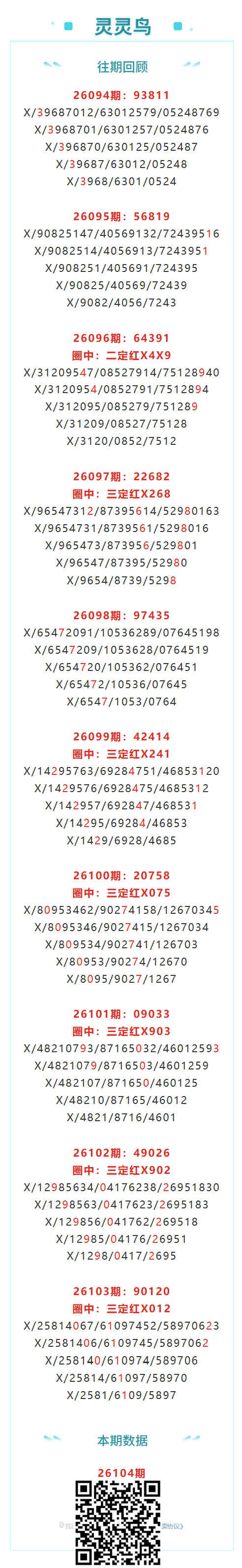 【排列五-104期】三定5连红!本月圈红13次三定,三定近10红6;上期三定红X012 发表于:2026-04-24 11:41:23 浏览次数:301 上一篇: 下一篇:没有了 【各有因缘莫羡人】 范围码15红10 点播26105期 【湛江铁钾】 范围码14红10 更新中 【智库】 范围码14红10 更新中 排列五杀码荣誉榜