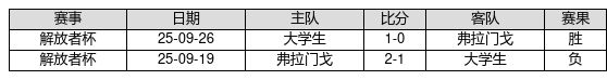 大学生 VS 弗拉门戈两队近10年的交战次数为2场,大学生1胜0平1负,赢球概率为50.0%,平局概率为0.0%,输球概率为50.0%。