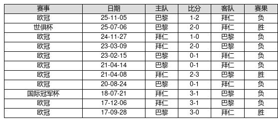 巴黎 VS 拜仁两队近10年的交战次数为11场,巴黎3胜0平8负,赢球概率为27.3%,平局概率为0.0%,输球概率为72.7%。