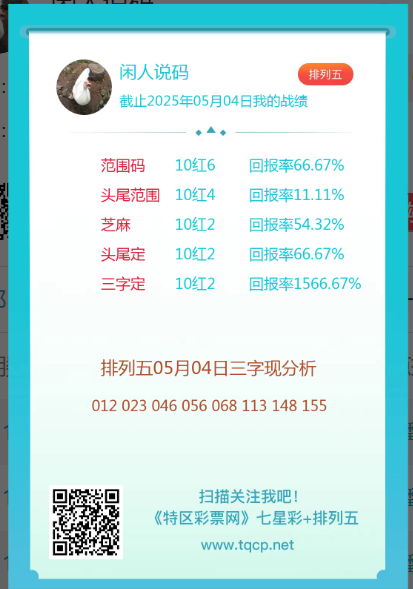排列五25114期点播推荐梅子,彩女和闲人说码 3位分析师 发表于:2025-05-04 15:07:17 浏览次数:446 上一篇: 下一篇:联通彩票手机报第3182期预测信息 【沧海一声笑】 范围码15红10 点播25340期 【独胆英雄】 范围码15红10 点播25340期 【牛哥出品】 范围码15红9 点播25340期 排列五杀码荣誉榜