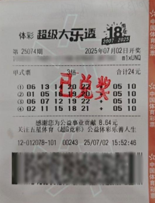 林女士凭借这张24元的单式倍投票,幸运地获得了体彩大乐透2510万余元的奖金,除了3注基础一等奖外,还中得了9注九等奖,总奖金为2510万余元。