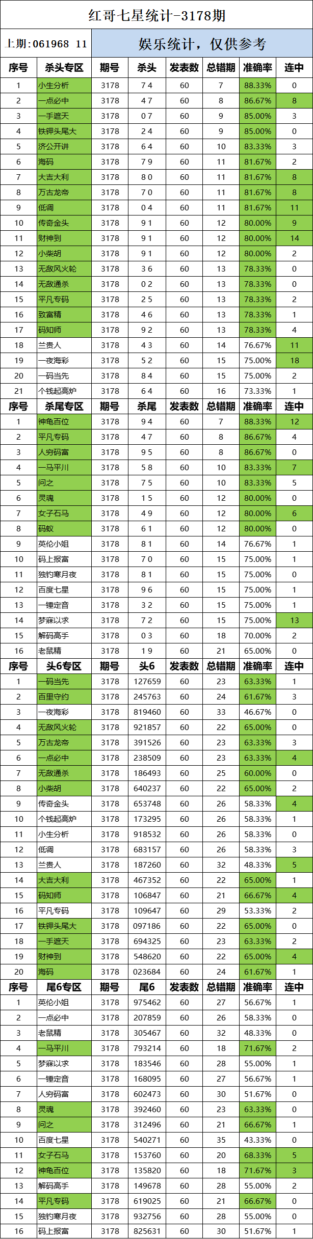 3178期:红哥统计 发表于:2025-04-23 11:39:55 浏览次数:586 上一篇:3178期:二爹统计 下一篇:3178期:红哥统计 【红炉点雪】 范围码15红11 点播25336期 【财富】 范围码15红9 点播25336期 【沧海一声笑】 范围码15红9 点播25336期 福彩3D杀码荣誉榜