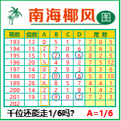 “南海椰风”第3202期推荐版局规律,本期千位16走三步.